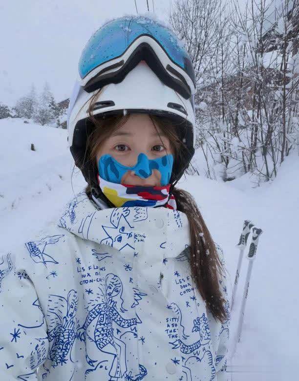 在照片中可以看到,奶茶妹妹章泽天穿着白色打底的蓝色印花纹的冲锋服,戴着白色的防护帽和蓝色的护目镜,她的脸上还贴着蓝色的防冻贴,看起来十分保暖。章泽天站在雪地上,拿着手机,对着镜头拍照。虽然是素颜出镜,但是状态很不错,尤其是在冰天雪地的环境下。